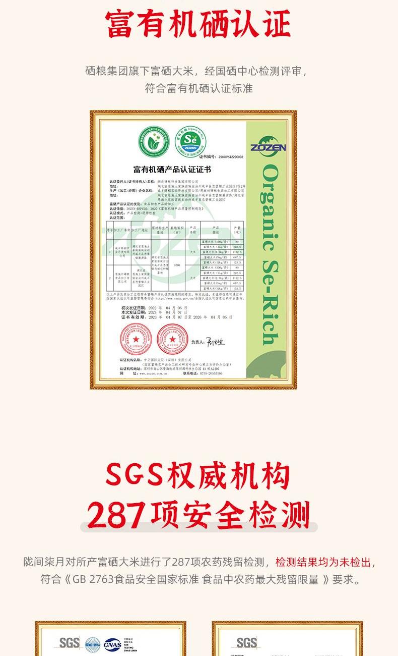 1、世界硒都,恩施原產(chǎn),湖北省放心糧油企業(yè)出品; 2、一年一季,鮮稻現(xiàn)碾,生長(zhǎng)周期長(zhǎng)達(dá)7個(gè)月,真空包裝,米香濃郁; 3、富有機(jī)硒認(rèn)證,富有機(jī)硒,每100g平均硒含量≥20ug; 4、富硒大米營(yíng)養(yǎng)價(jià)值高,科學(xué)補(bǔ)硒