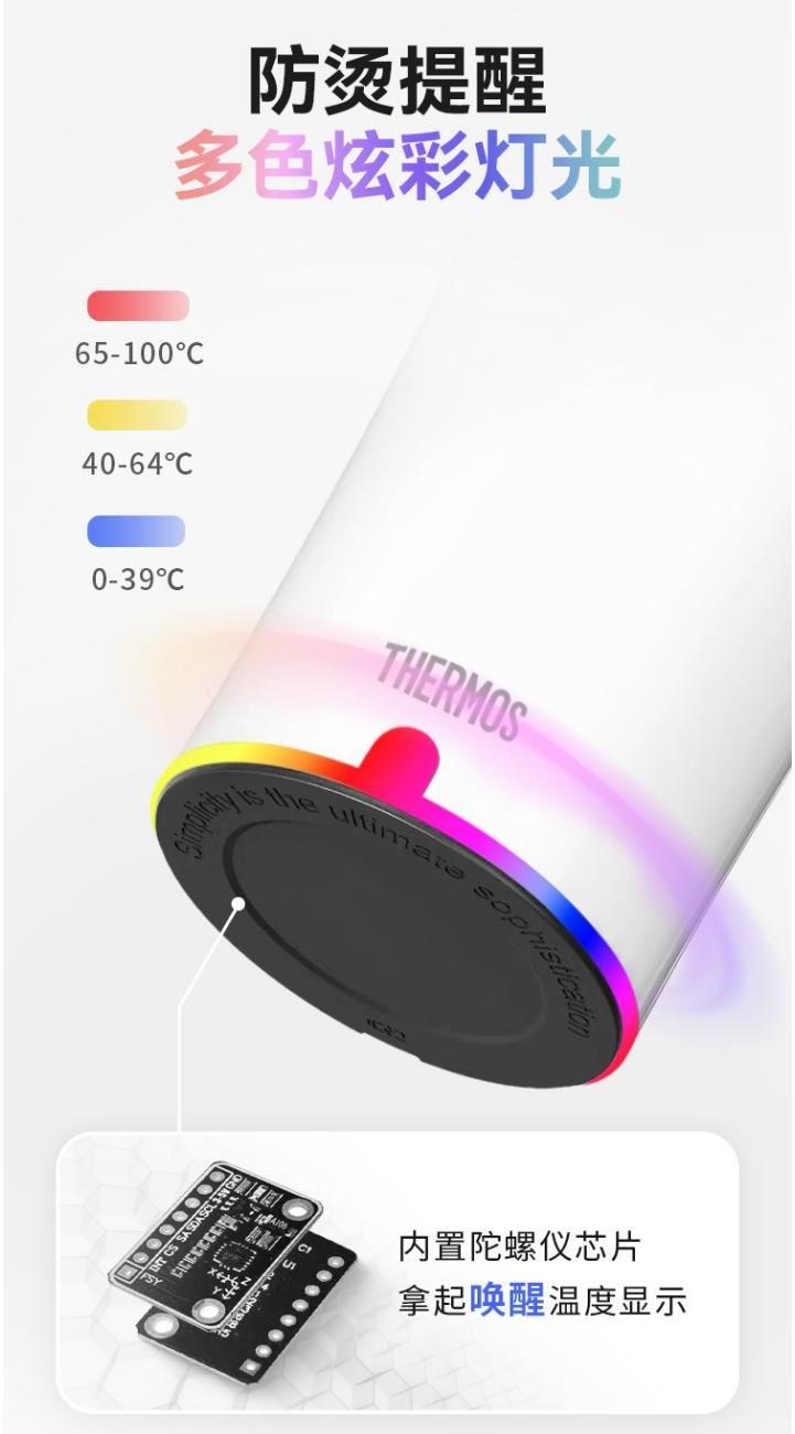 5.多色炫彩燈光;防燙提醒,拿起喚醒溫度顯示