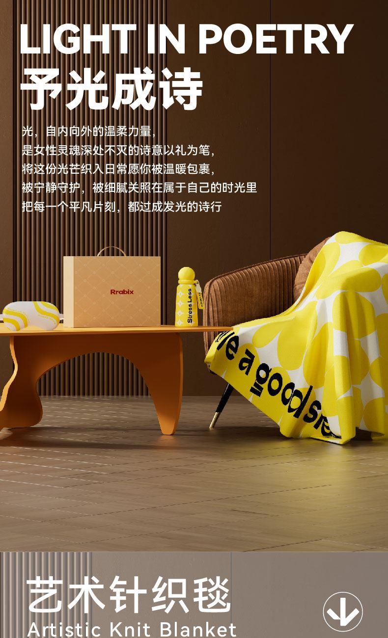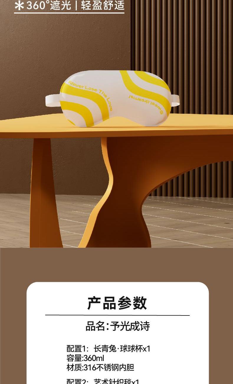 光,自內(nèi)向外的溫柔力量,是女性靈魂深處不滅的詩意 以禮為筆,將這份光芒織入日常 愿你被溫暖包裹,被寧靜守護,被細膩關(guān)照 在屬于自己的時光里 把每一個平凡片刻,都過成發(fā)光的詩行 內(nèi)配: 配置一:針織毯x1 配置二:球球杯x 1 配置三:睡眠眼罩x1