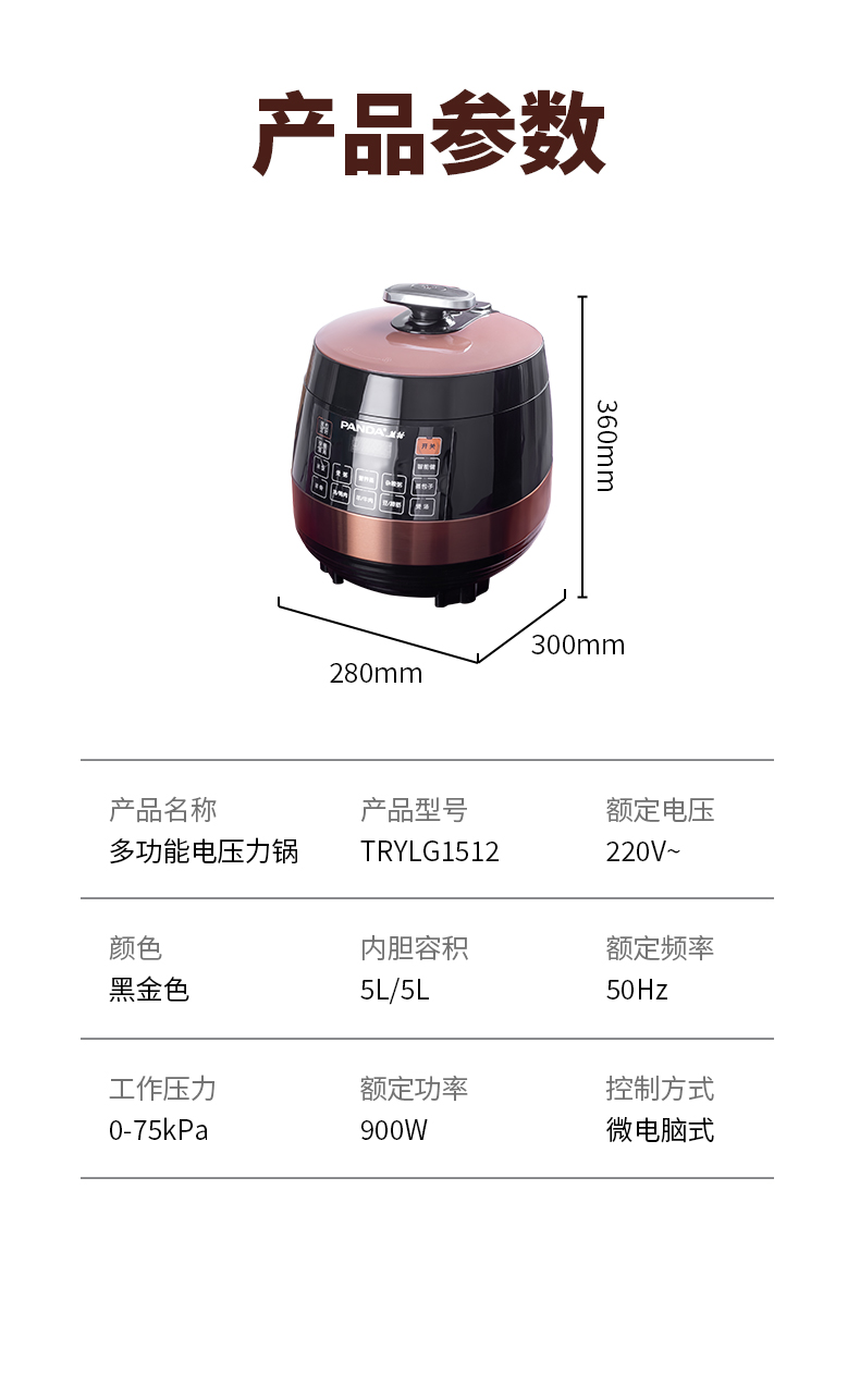 熊貓電壓力鍋TRYLG1512精致雙膽 熊貓電壓力鍋TRYLG1512精致雙膽