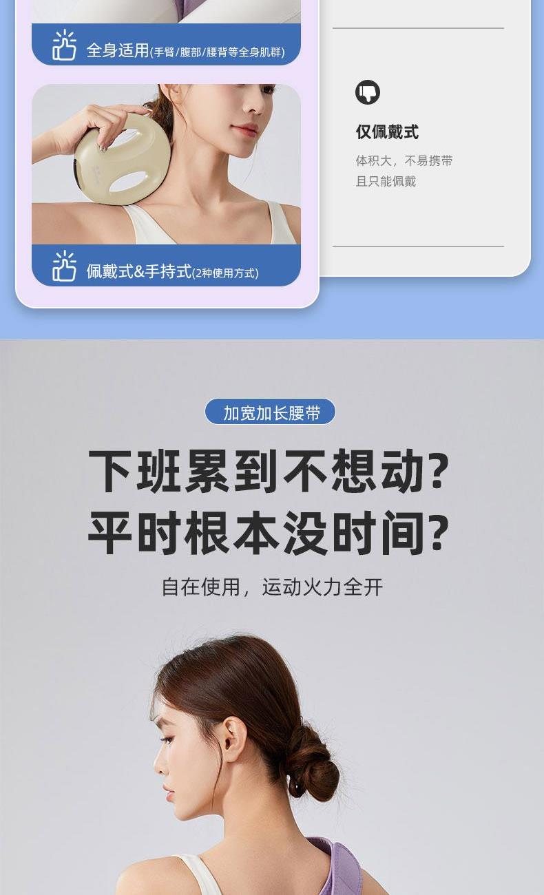 2、1臺筋膜環(huán)=6臺按摩儀,一機(jī)多用,多部位按摩,貼合身體各部位,臀部、腰部、腹部、等多角度按摩
