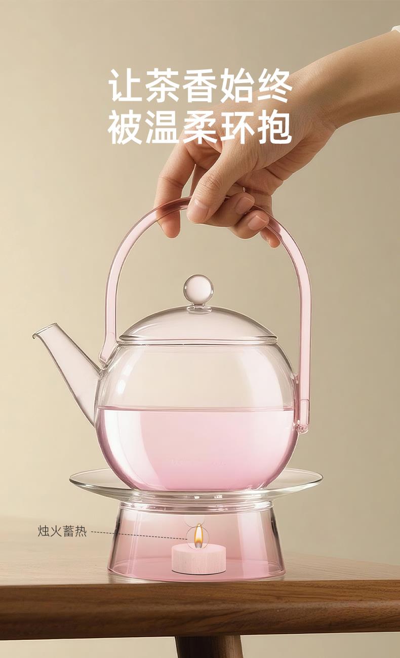芳華琉韻粉晶玻璃茶器-暖茶款 芳華琉韻粉晶玻璃茶器-暖茶款