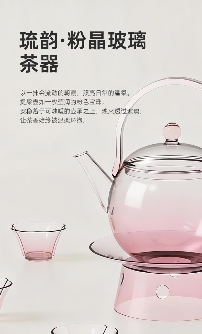 芳華琉韻粉晶玻璃茶器-暖茶款