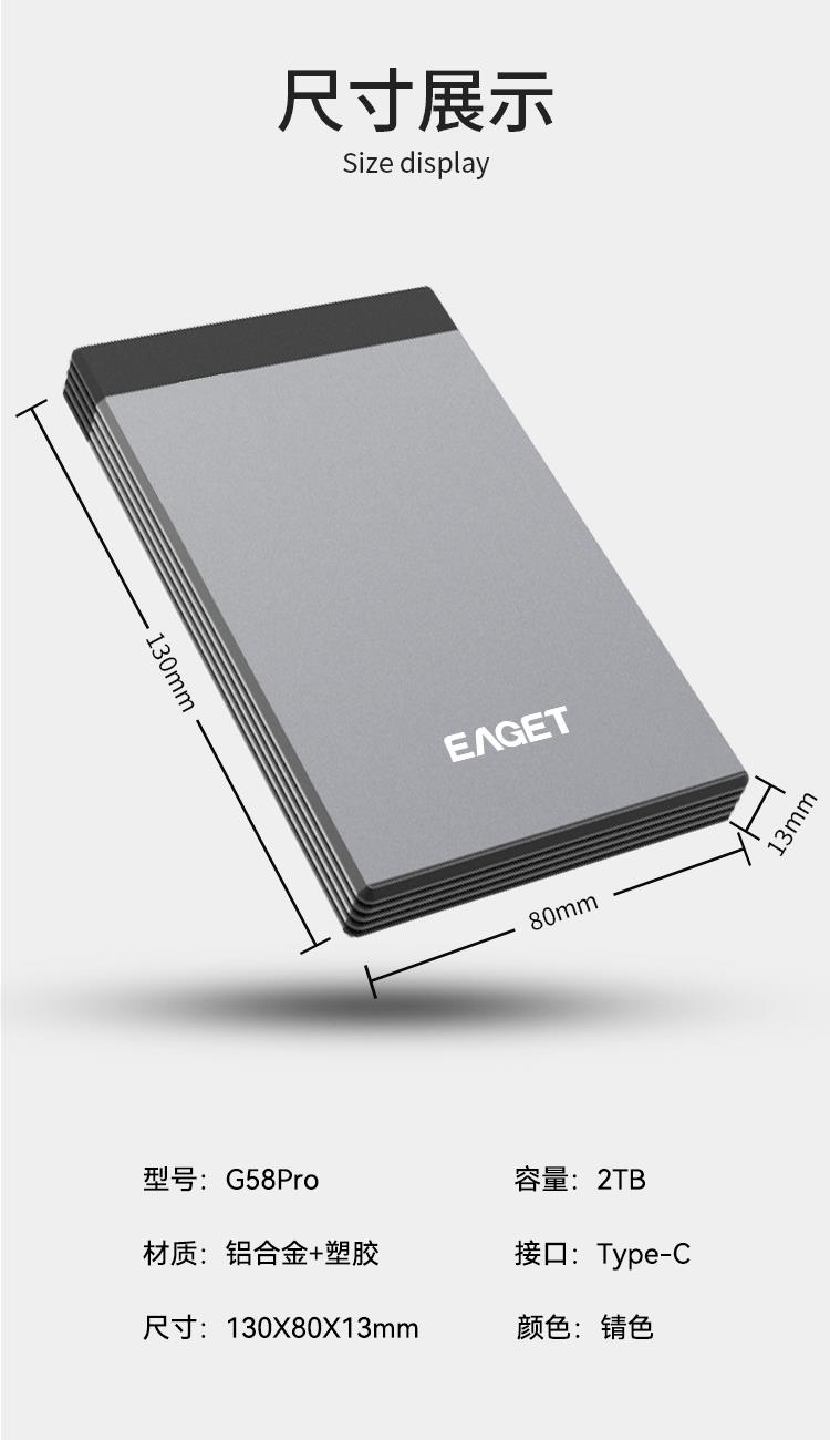 (EAGET)憶捷G58pro高速傳輸商務(wù)移動硬盤2TB