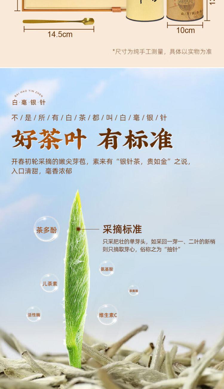 【系列】白毫銀針·隰有荷華禮盒 【配料】云南大葉種茶鮮葉 【等級】特級 【凈含量】200克(100克*2罐) 【保 質(zhì) 期】在符合貯存條件下 適宜長期保存 【貯存條件】干燥、密封、防潮、防異味 賣點(diǎn): 1.金獎品質(zhì),榮獲茶博會金獎 2.高山茶園老樹茶,好山好水出好茶 3.明前頭采,手工采摘單芽,一年只采一次,量少而珍 4.內(nèi)質(zhì)豐富,滋味鮮甜 5.干茶=芽頭粗壯 滿披白毫 茶湯=鮮爽甘甜 清香濃醇 茶底=芽頭肥碩 鮮亮均勻 6.臻品雙罐禮盒,顆顆優(yōu)選,甄選芽頭,送禮有面